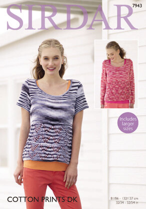 Long and Short Sleeved Sweaters in Sirdar Cotton Prints DK - 7943 - Downloadable PDF