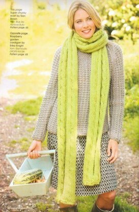 This is a pattern for a long cable chunky scarf, originally published in Knitting magazine. Photos Laurel Guilfoyle, cover Knitting Magazine.