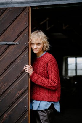 MATERIALSYarn: Järbo Svensk Ull (100% Swedish wool, 100 g – 197 yds / 180 m per skein). You need: 5 (6, 6, 7, 8, 8, 9, 10, 11) skeins or approx. 950 (1060, 1170, 1290, 1430, 1580, 1700, 1870, 2010) yds / 865 (960, 1080, 1180, 1310, 1440, 1560, 1710, 1840) m of worsted weight yarn. The sample was knitted in colorway Falu Red.