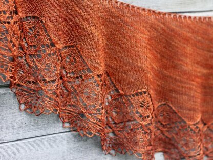 Longfellow is a crescent shaped shawl worked up in one skein of Verdant Gryphon Mithril in the La Cantante colorway. It starts off with stockinette short-rows and flows into an elegant lace pattern.