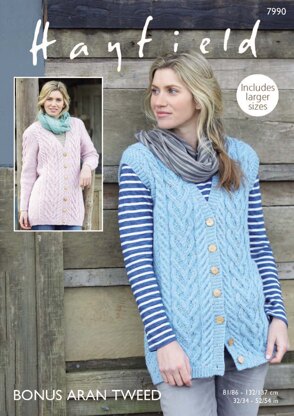 Longline Waistcoat and Jacket in Hayfield Bonus Aran Tweed with Wool - 7990 - Downloadable PDF is a Intermediate Knitting pattern by Hayfield, available as a Downloadable PDF and includes instructions in English. Super fun to make, this pattern could be your next masterpiece!