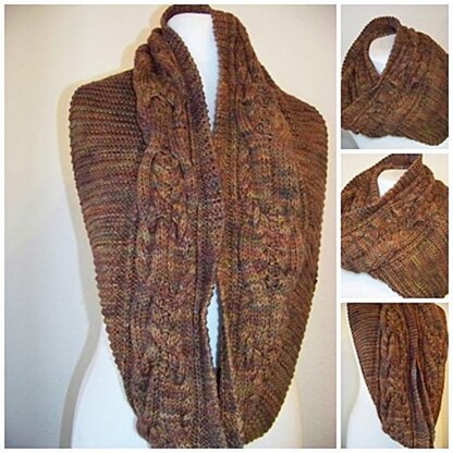 Measurements: 11.25 inches (28 cm) wide; 56 inches (140 cm) length. Materials: Yarn: Malabrigo Twist (100% Merino – (137 meters / 150 yards) 100g / skein) – 3 skeins. Needles: US 9 (5.5 mm) circular needle and 2 cable needles. Other: Crochet hook, waste yarn, tapestry needle, stitch markers. Gauge: 16 sts and