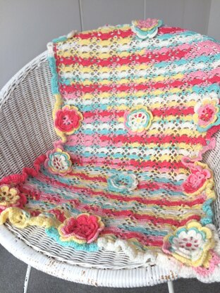 A super flowery baby blanket. Ideal for pram, cot or cot bed. A very lovely keepsake and fun to make.