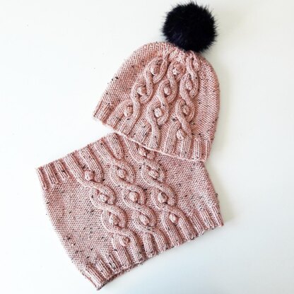 Lopta is a hat and a matching cowl with nice cables and bobbles to protect you from the winter cold.Lopta I available in 4 sizes, so it is perfect for warming the whole family. You can even knit a men’s version by knitting the cable without the bobbles.