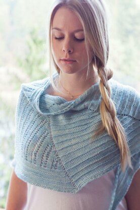 Garter ridges paired with feminine lace openwork within a uniquely shaped shawl create a lovely juxtaposition that is both flattering & easy to wear. Loslassen drapes with ease & style mimicking the look of raglan shaping slimming the frame & showcasing hand-dyed yarn beautifully.