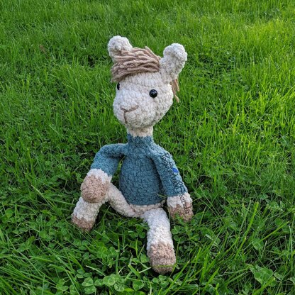 - 12 mm black safety eyes Yardage (total 115): Main: 65 yards Sweater: 40 yards Feet: 10 yards Plus: about 5 yards worsted weight for the hair