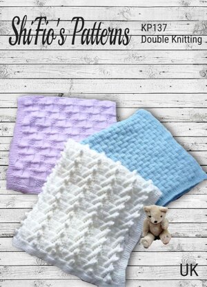 This knitting pattern for a 3 baby blanket are lovely to make knitted all in one piece, they are sure to be loved and is perfect for a boy or girl All are made in double knitting yarn White Bobble 61cm x 69cm Lattice 65cm x 71cm Chequered (reversible) 69cm x 74cm