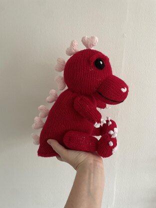 Learn to knit this cute love themed Dinosaur soft toy with this fun knitting pattern. Your dino will be fun and quick to make and is great as a gift for Valentines or birthdays. Your finished plushie will measure roughly 40cm tall.