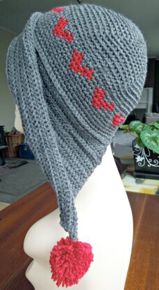 You will only need two 2 oz skeins (50 g balls) of light worsted (double knitting/8 ply) yarn in the main color, plus an oddment of yarn - approximately 1 oz (25 g) - in a contrast color to work the heart pattern and pompoms.
