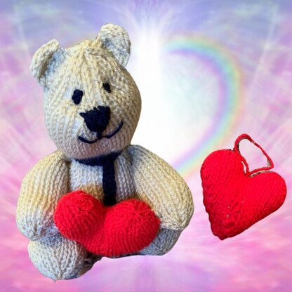 The pattern is for a 11 inch teddy with love heart attached to gift to your recipient and another love heart for the gifter to keep. The pattern comes with a message suggestion or template to make your own message for putting inside each heart.