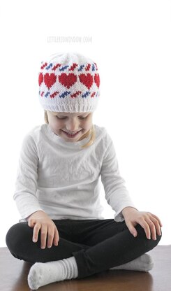 This cute love letter airmail hat knitting pattern has a blue and red border just like an airmail envelope. It's the perfect Valentine's Day knit for your baby or toddler! This cute pattern includes instructions to knit this easy baby hat in 4 sizes with charts and written instructions. This patter is knit in the round and requires basic knowledge of fair isle/stranded knitting techniques.