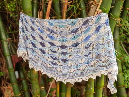 Love The Way You Lie is a modern lace shawl pattern worked from the top down using short row lace insertion teamed with striped garter rows. Two contrasting colours are used, which are swapped without the need to cut any yarn, so the weaving in is minimal. After the lace, the shawl moves into a traditional Shetland Hap border and finishes with a lace edging, which is knit on sideways. No seaming required! Depending on the colours you choose, you can change to mood of the shawl from flamboyant to understated elegance, it's up to you. Size: approx. 165 cm (65") wide by 64 cm (25") deep, after blocking
