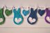 The pattern includes the Lovebomb triangle with 4 different border choices (plain, scallop, picot and loop borders), the Lovebomb Circle with loop border, the Lovebomb Bunny and the Lovebomb Easter Egg, as well as how to assemble your bunting.