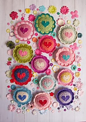 The pattern fully explains how to make the two sides, crochet them together and add scallops. There are tips on filling the pincushion too. There are full colour photos, diagrams and easy-to-read instructions, advice, yarn colour tips and suggestions.