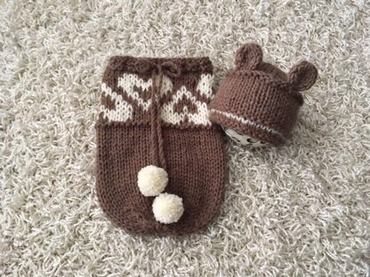 This is a downloadable PDF pattern for the knitting of this Lovebug sac and beanie set
