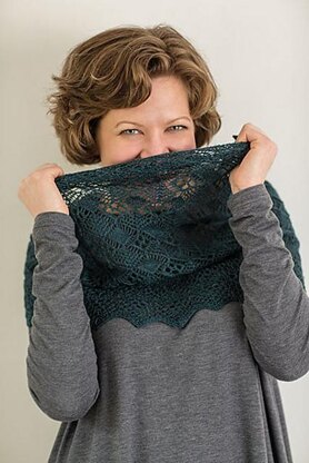 This beautiful design has intricate lace patterns with a border that is knitted separately (back and forth) then attached to the main work which is worked in the round.