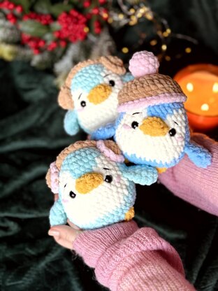 This versatile pattern includes two accessory options—a cozy hat and cute ear warmers—so you can customize your penguin's look. The low-sew design minimizes assembly time, making it quicker to complete while still achieving an impressive result.