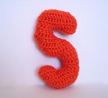 This letter e is approximately 6.5 inches tall and 5 inches wide. This item is crocheted and then stuffed with polyfill stuffing.