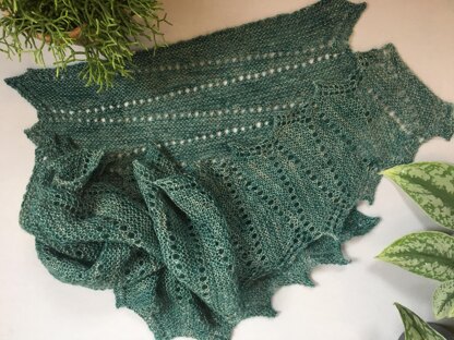 A deceptively simple yet addictive knit. This scarf starts out at 15cm wide and grows to a generous 48cm over the 220cm length. It uses a simple eyelet lace saw tooth at one edge and short row shaping to create ‘wedges’ of garter stitch.