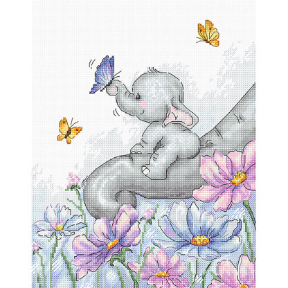 Luca-S Elephant with Butterfly Cross Stitch Kit - 19cm x 23cm