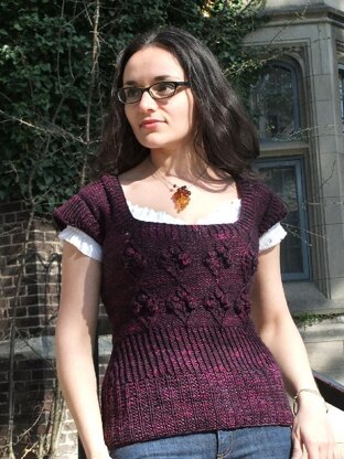 Lucania is the perfect cabled addition to your sleeveless sweater wardrobe. Great for layering, this seamless knit features a bottom-up, in-the-round construction and simple textural complements to the diamond-shaped cable repeats. The neckline and sleeve caps are picked up after the body is complete.