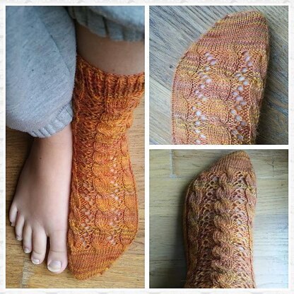 This pattern is a lovely cable and zig-zag lace sock. The size is S, depending on yarn (I recommend fingering yarn weight). It’s my first pattern and if you should find any issues with it, please let me know!