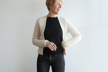 Named for Marlene's favorite funny lady, here's Lucy! – a delicate shrug for looking stylish while taking off the chill. This garter stitch design is worked from the top down with slight shaping at the waist. The sleeves, also top down, are worked separately using short rows at their cap shoulder points for smooth shaping and ease in setting in. Simple garter stitch trims center front edges, that continues up and around the back, where it rises slightly as it wraps the neckline.