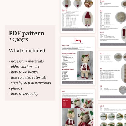 Lucy cat crochet pattern. This tutorial for amigurumi is composed of links to videos, step by step photos to guide you. The instructions are suitable for an intermediate level. DIY instant download in PDF file.