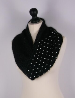 Just one skein of Cascade’s Luminosa makes this striking cowl. The main body is 70% stocking stitch worked on the bias, with a simple eyelet pattern dotted with pearl like beads. Add a touch of luxury to your winter wardrobe