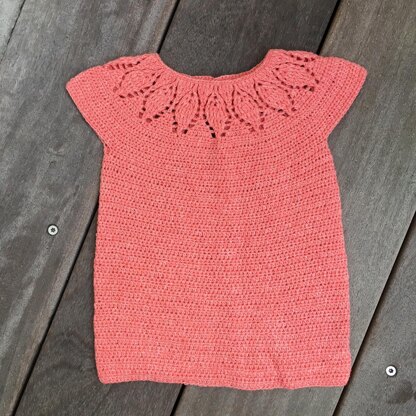The cutest baby top with leaves on the circular yoke. It is made top-down and is seamless.