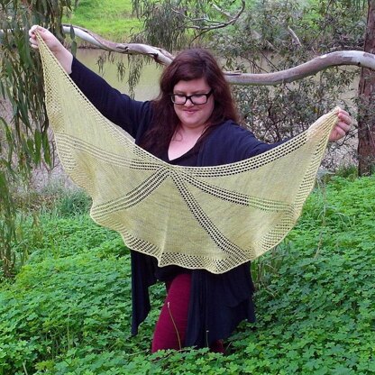 A crescent-shaped shawlette with simple lace accents and a stockinette ground. The name ‘Lunate’ means moon-shaped.