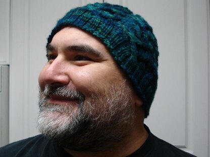 The pattern is written out and charted, and although the cables look complex, they are surprisingly easy to work. The cables run all the way to the top of hat and are incorporated into the decreases. A cable needle is listed, but this a really good hat to practice cabling without a cable needle.