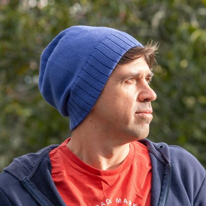 The hat can be worn in two ways - as a hanging slouchy one and with an upturn. It is perfect for the spring-autumn period, made of cotton also is for people who are sensitive to woolen or synthetic garments. This pattern is suitable for all standard gauge (4.5 mm, 200 needles) knitting machines. Make a tension swatch before knitting the hat to determine correct tension gauge for the yarn and stitch type. The hat made on knitting machine Brother KH-860 single bed.