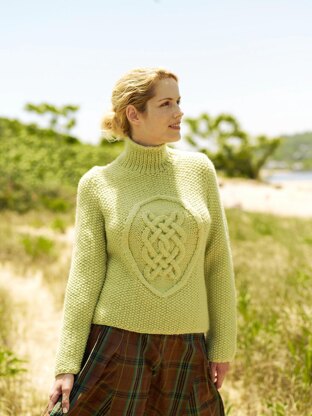 Madeline features an embossed Celtic cable motif framed with stockinette on a textured background.