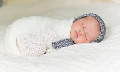 This bonnet is made all in one piece; each tie is worked with short rows then bound off, leaving the body stitches between. Both a flower pattern version and a plain stockinette version are included; ties and crown are the same for both versions. There are 3 sizes for both DK and worsted weight yarn; the instructions are the same for both weights. The finished measurements will differ according to yarn weight.
