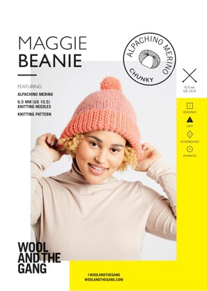 Maggie Beanie in Wool and the Gang Alpachino Merino - V767726308 - Downloadable PDF is a Beginner Knitting pattern by Wool and the Gang, available as a Downloadable PDF and includes instructions in English. Super fun to make, this pattern could be your next masterpiece!