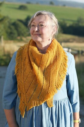 Magic Hour is a simple lace shawl, pleasing to knit and a joy to wear. Its contemporary asymmetric shape wraps around the body easily. On completion of the main body of the shawl tassels are made from the remaining yarn and then drawn through the cast-on stitches and knotted in place.