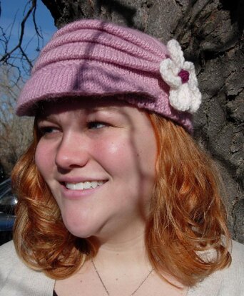 Brimmed hat with knitted magnolia flower, picot edging, and soft folds. Brim shape is created through geometry and tight gauge - no cardboard or plastic! Hat can be trimmed with buttons instead of a flower if desired. Hat can be made longer than cap length pictured, but you will need more yarn. The brim's structural integrity comes from the recommended cast on, the tight gauge, shaping, and leaving the wraps in place unless otherwise specified. Brim photo tutorial available - email me after pattern purchase. Worsted weight, approx. 190yds, If you want a longer hat, not the cap as pictured, you’ll need more yarn. The pictured cap used the entire skein of Brown Sheep worsted. For the flower, you’ll need small amounts of two contrasting colors.