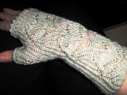 I made mine long so they would cover the forearms with a 3/4 length sleeve. They came in just under one skein of the Manos silk blend, but if you are in a hurry, you could easily do two pattern repeats instead of three. Malabrigo's silky merino would also be lovely.