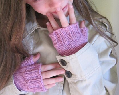 These sweet fingerless mitts where made to match my Manchester Mitts pattern for American Girl Dolls. They are also available in adult sizeadult sizes - knit matching "Dolly and Me" or "Mommy and Me" sets!)