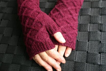 Interwoven cables criss-cross the surface of these cozy mitts, providing rich texture and extra warmth. The stitch pattern is both written and charted, and the geometric design is easy to follow. For a matching set, check out the slouchy Mandala Hat, with decreases at the crown creating a fractal design reminiscent of circular mandala patterns.
