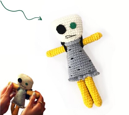 To make this toy it isn’t necessary to use the recommended yarn and crochet hook. Using a larger crochet hook, and a suitable yarn, the toy will be larger preserving the same proportions