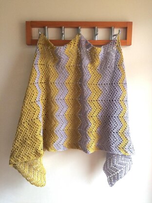 Beautifully light and lacy design that can be worn in many ways. Alternating chevron pattern of solid stiches and lacy openwork makes this stole a great accessory for any time of the year.