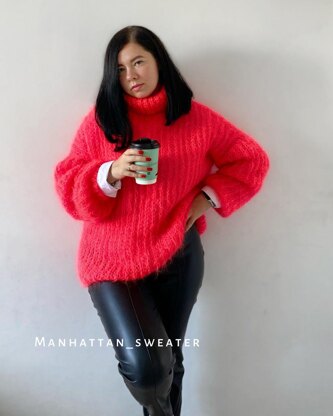 The Manhattan Sweater is worked bottom up in rounds in a Half fisherman’s rib to underarms. Then the yoke is worked back and forth (flat) to shape the neckline and shoulders with short rows. Sleeves are knitted in the round from the underarms down to the cuffs.