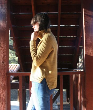 Maniototo is worked in the round from the top down, with a modified saddle shoulder. Drop shoulders are shaped with short rows for fit, and front and back are picked up from shoulders and worked flat to armholes, then joined to work remainder of body in the round; tails are once again worked flat. Sleeves are picked up in armholes, and worked in the round to cuffs. All edges are cast on/bound off using tubular method.