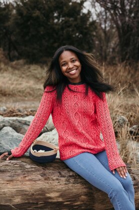 Inspired by the sunny colors of one of Spain’s most popular Mediterranean towns, Marbella Pullover uses lace patterns in a DK weight wool/cotton blend yarn for a soft, breathable pullover, perfect for cool summer nights and as a transition into warmer weather. It is worked flat from the bottom up and seamed.