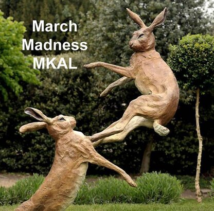 The March Madness Shawl is a Crescent-shaped Lacework Shawl named for the luxurious rabbit fur used to create the original. The finished size is 79 in (200 cm) along top edge with a center height of 20 inches (50 cm).