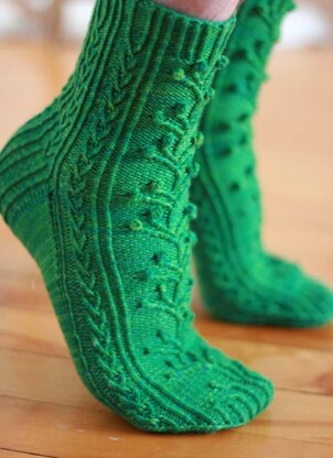 Living in a part of the world where winter often seems endless, I am always so relieved to discover that it does, in fact, eventually come to an end. It’s incredibly reassuring when the snow melts, the birds return, the sunshine feels warmer, and the grass and leaves start to grow again. Socks are always welcome in spring, particularly in colours reminiscent of the bloom returning to the world outside your front door. What better way to celebrate than with a bright pair of leafy-green, cabled vine socks?
