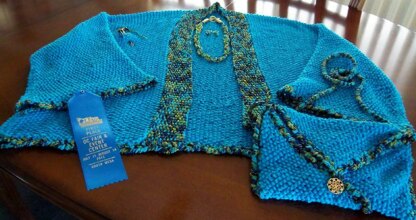 I'm offering the pattern for the jacket only. It is an easy knit in one piece, but I designated it as an Intermediate skill level knit because stitches need to be picked up and the knitter needs to be able to do single crochet and reverse single crochet. Because of its unstructured design, it looks lovely on women who wear sizes Small through Extra Large.