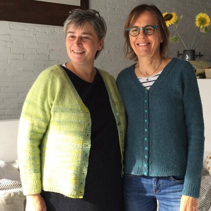 Maguerite is a cardigan with textured stitch and stripes. Knit topdown with a V neck line. Raglan sleeve, A line for the body and short rows for the ribbing.